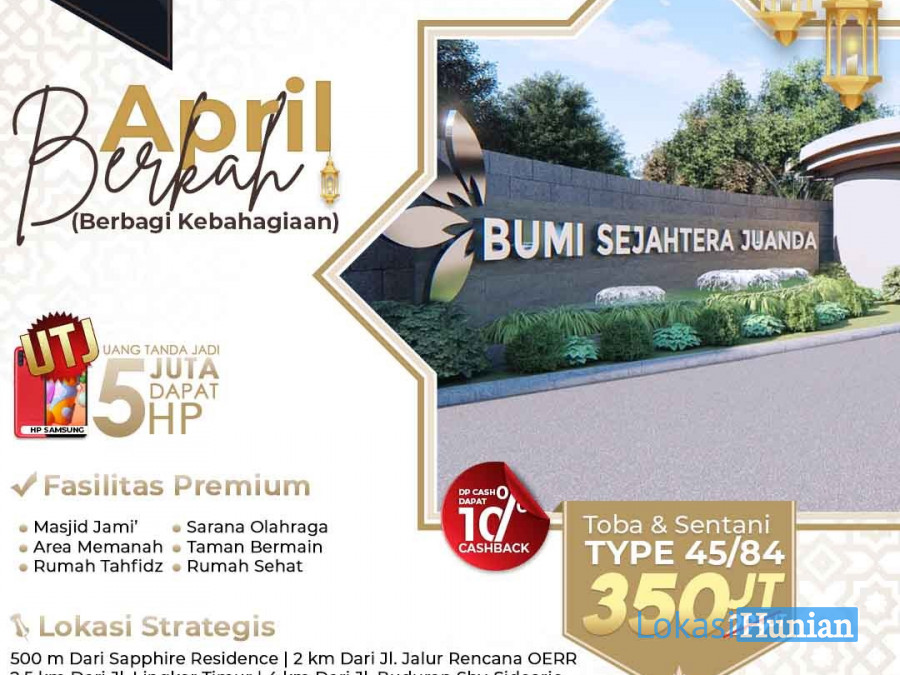 Bumi Sejahtera Juanda, Perumahan kawasan modern dengan fasilitas smarthome, fasilitas umum komplit, aman, dan anti banjir. Kami memberikan harga yang sangat terjangkau, dengan promo hingga 99 juta rup iah, cashabck 10%, free smartphone, dan banyak keuntungan lainnya yang bisa anda dapatkan dan nikmati. Yuk booking sekarang.. Lihat Selengkapnya
