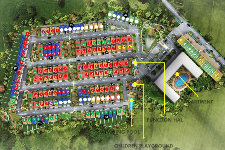 3. Fasilitas Lengkap: One Gate System', ekslusif Swimming Pool, Function Hall, Garden Area, Children Playground, Tradisional Game Area, Lotus Pond, Security 24h + CCTV, Underground Utilities Listrik Bawah. ROW jalan Lebar 8 meter dengan saluran air