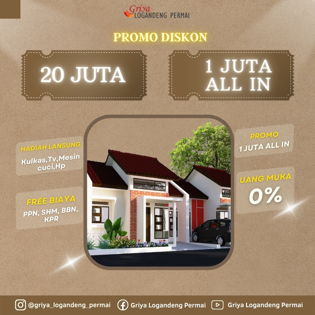 Hanya di Griya Logandeng Permai 1 juta All in bebas biaya biaya dan dapatkan juga hadiah langsung serta tawaran menarik dari Griya Logande