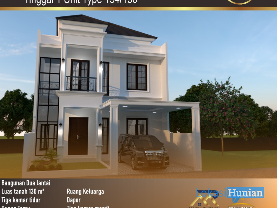 Type 154, rumah 2 lantai dengan luas bangunan 154 m2 dan luas tanah 130 m2.