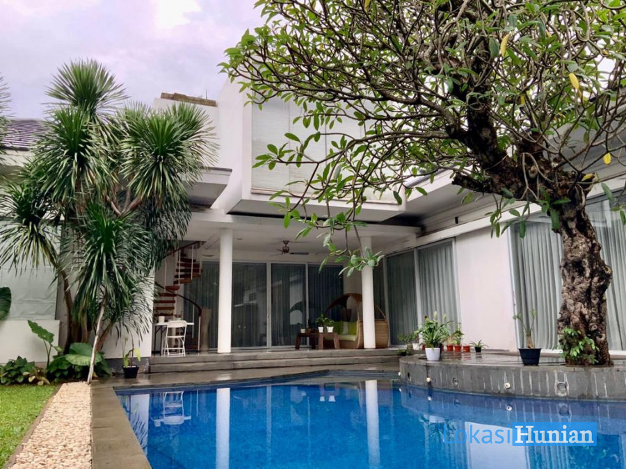 Jual rumah yang cantik dan asri berlokasi di kawasan elite Kemang Jakarta Selatan. Dikelilingi banyak pohon buah rambutan, mangga, sukun, jambu dll. Sudah ada kolam renang dengan kamar bilas. Ada 4 ka mar tidur, ruang entertainment, library, ruang keluarga, dapur bersih yang besar, dapur kotor di belakang.