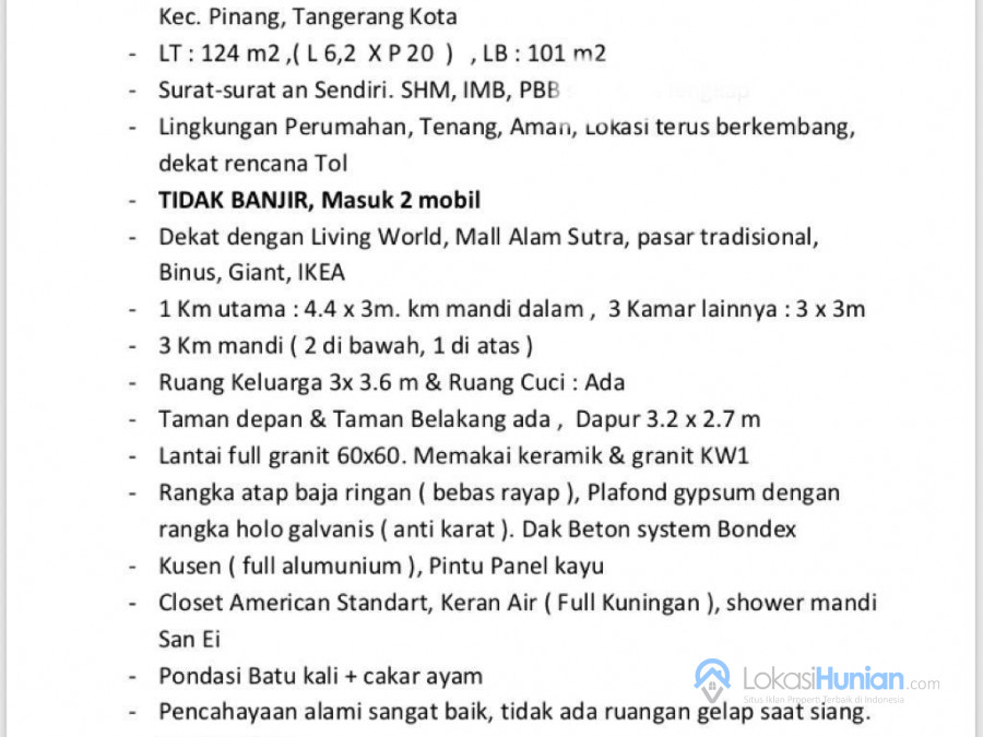 Luas Tanah : 124 m2