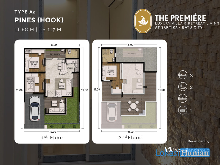 Luas Tanah : 88 m2