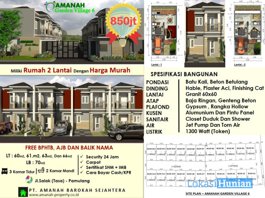 Luas Tanah : 65m2