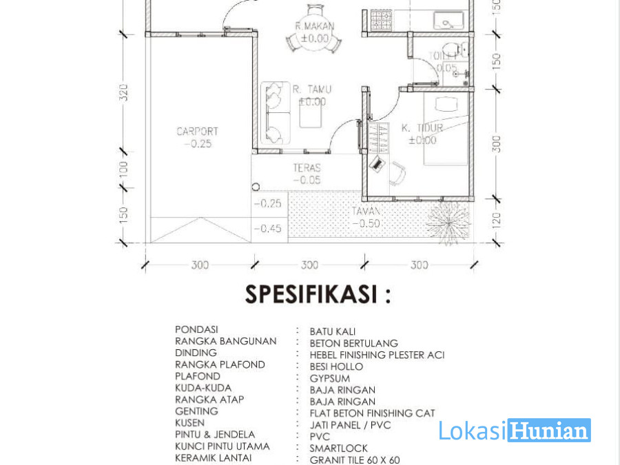 - Luas Bangunan :45m2