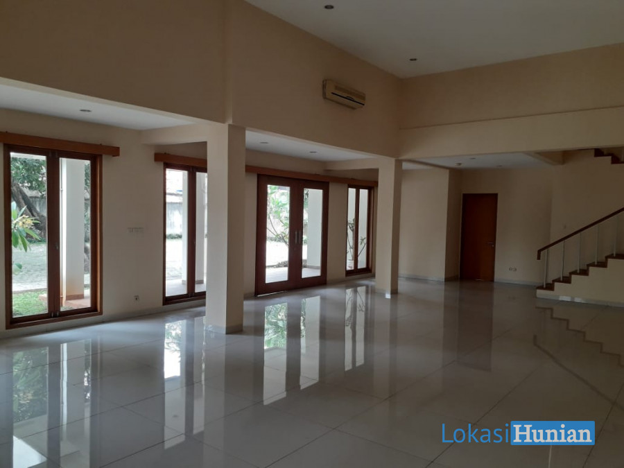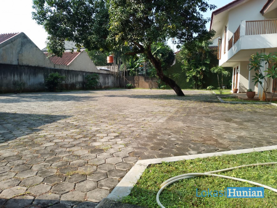 Jual rumah dengan halaman luas berlokasi strategis di Kemang Jakarta Selatan. Ada teras dan balkon luas, ada tempat barbeque, ada pos satpam.