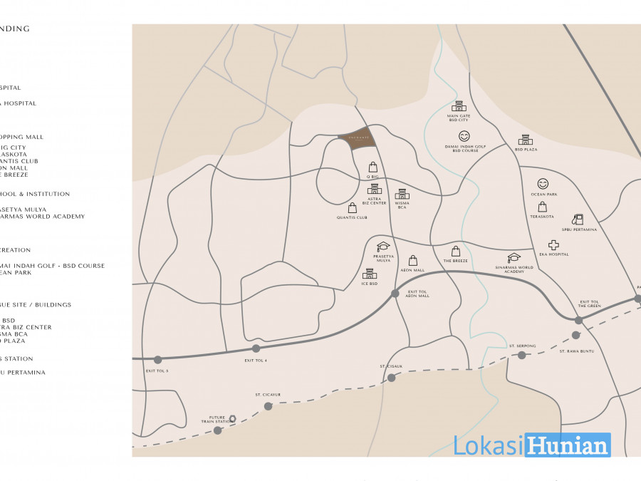 Lokasi Enchante Residence BSD sangat strategis, 5 menit dari pintu TOL dan Mall AEON BSD.