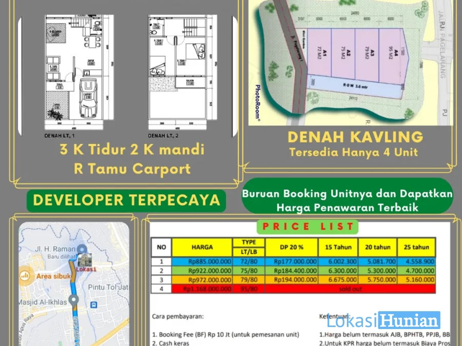 2.Luas Tanah 75 meter (Siap Huni/Finishing )