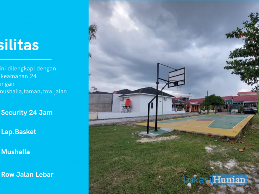 - Dilengkapi fasilitas Security 24 Jam,Row jalan lebar, mushalla,taman, lapangan basket