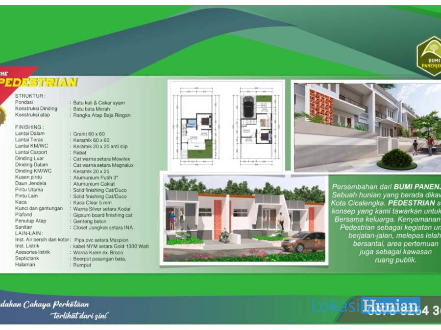Type type 54/72 rumah 2 lantai konsep pedestrian model 2 muka