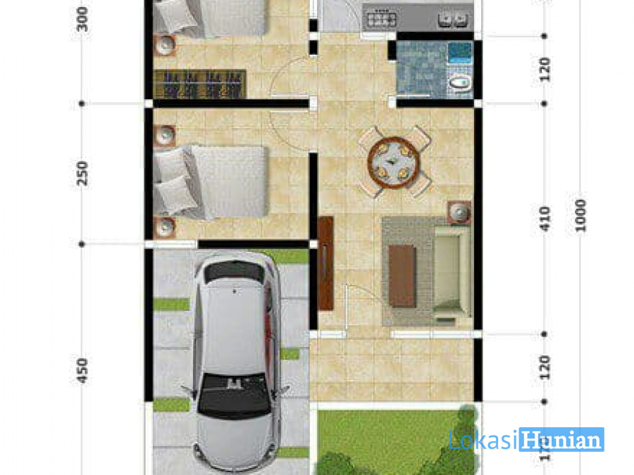 • 1 kamar mandi, ruang tamu, dapur