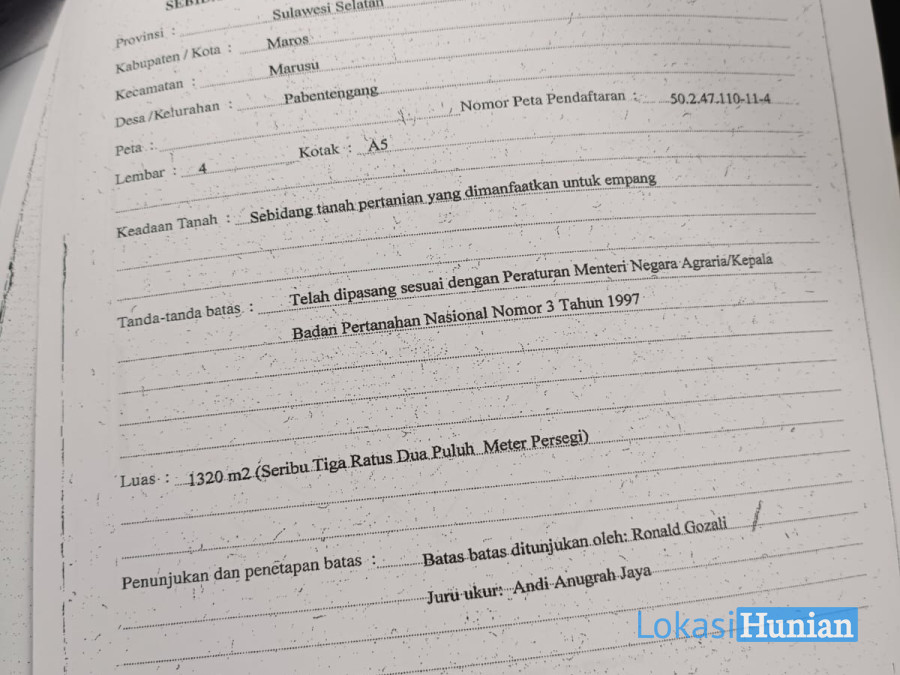 Lebar Tanah : 20 m2