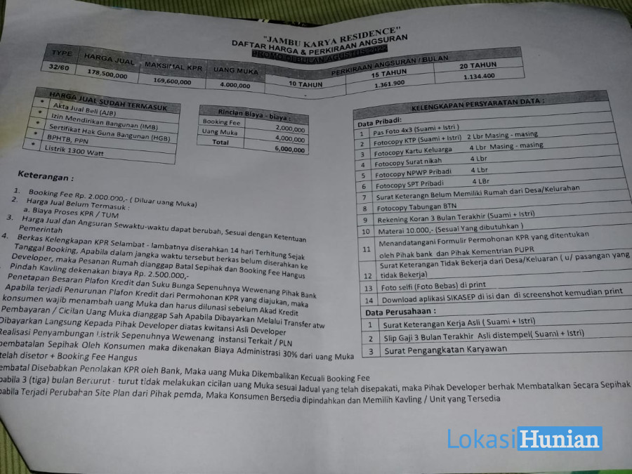 Perumahan KPR baru subsidi jambu karya
