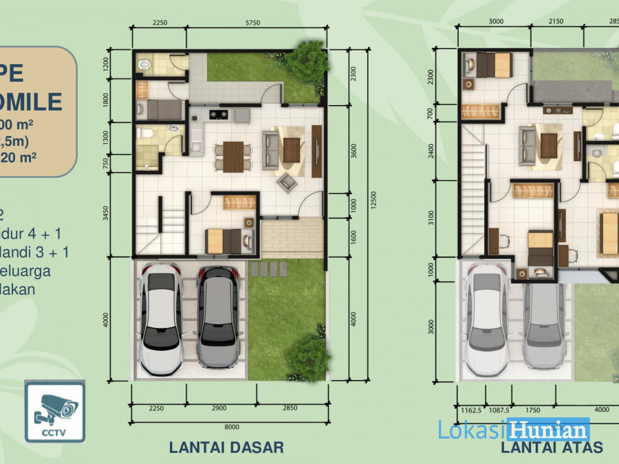 Luas Tanah : 100 m2 (8x12,5)