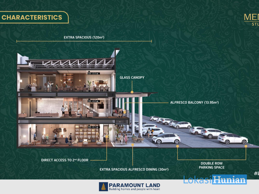 u desain kolom yang kokoh dengan permainan high ceiling pada bagian alfresco didesain untuk menciptakan karakter yang exclusive dan iconic yang memberikan kesan Menteng Studio Loft mewah dan attractive.