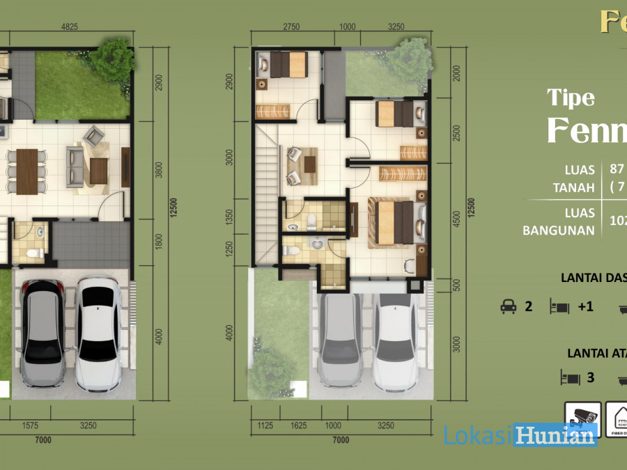 Luas Tanah : 87 m² (7x12,5)