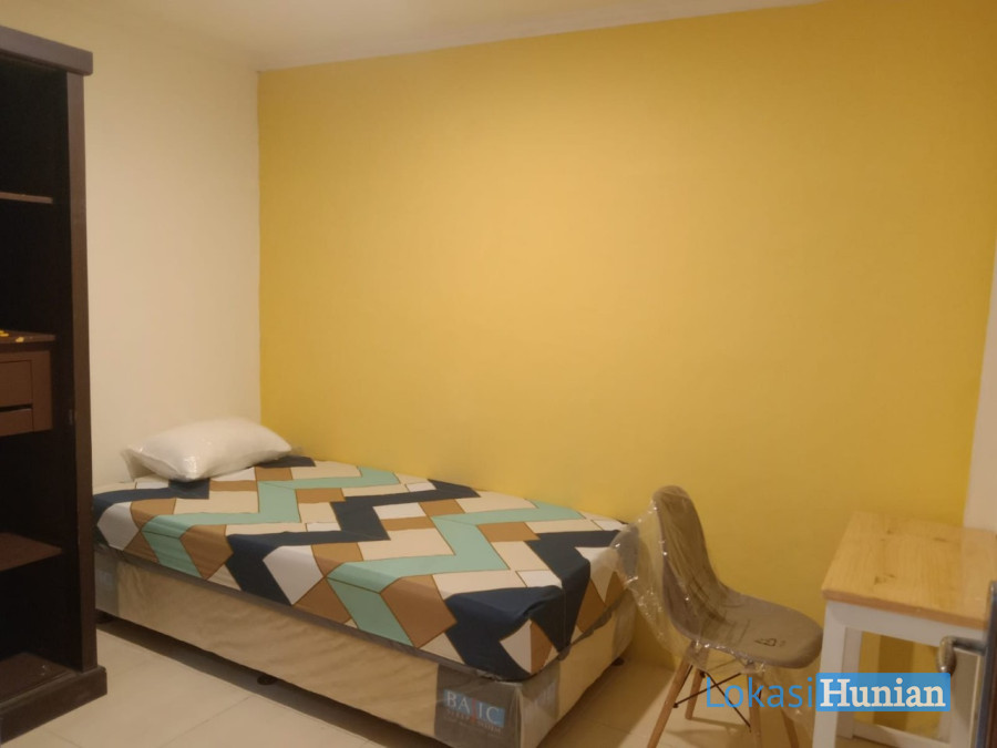 - Fasilitas kamar LENGKAP & BARU! (AC, kasur + dipan, sprei waterproof, meja, kursi, lemari baju)
