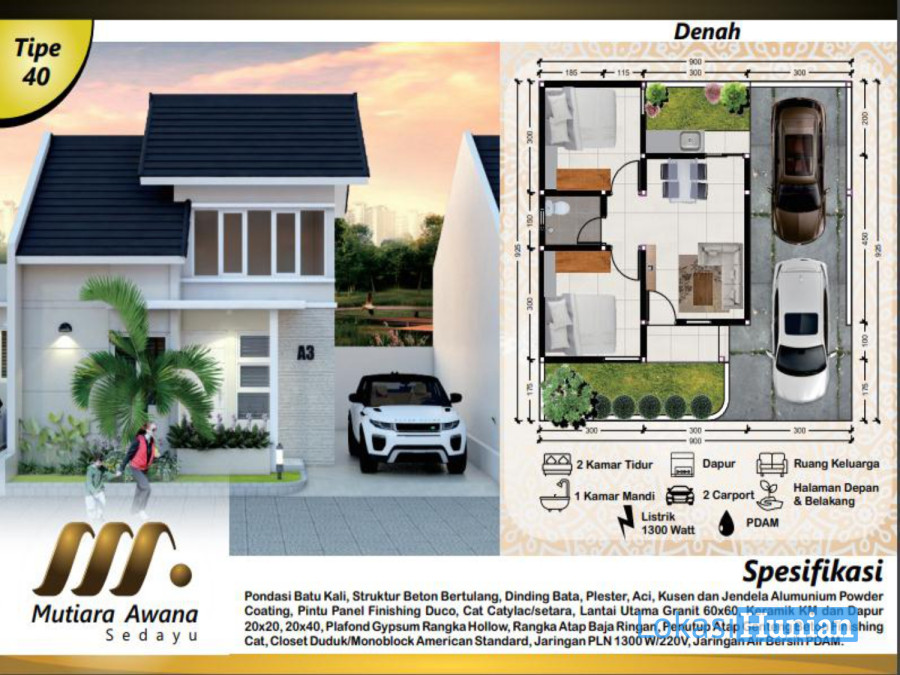 Type bangunan mulai : 40m2