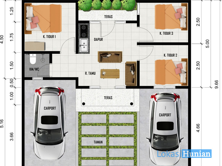 Dapur, Carport Muat 2 Mobil