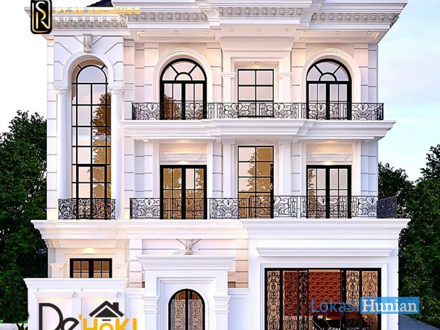 The classic interior house design originated from European culture like the bathroom shower, chandelier, wrought iron stair, etc.