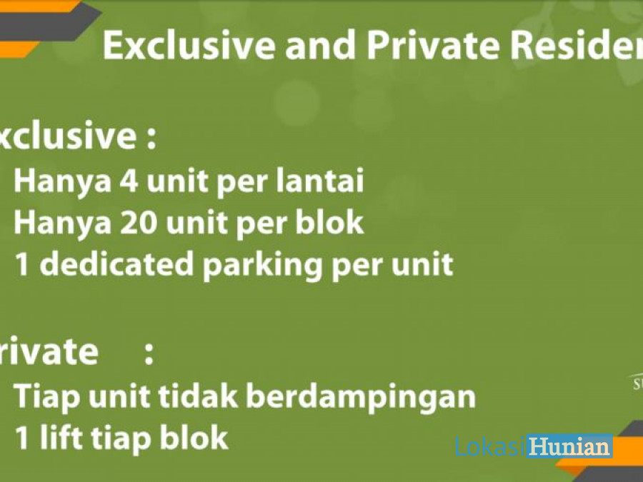 Exclusive Private Hunian : 4 unit per lantai dan 20 unit per blok