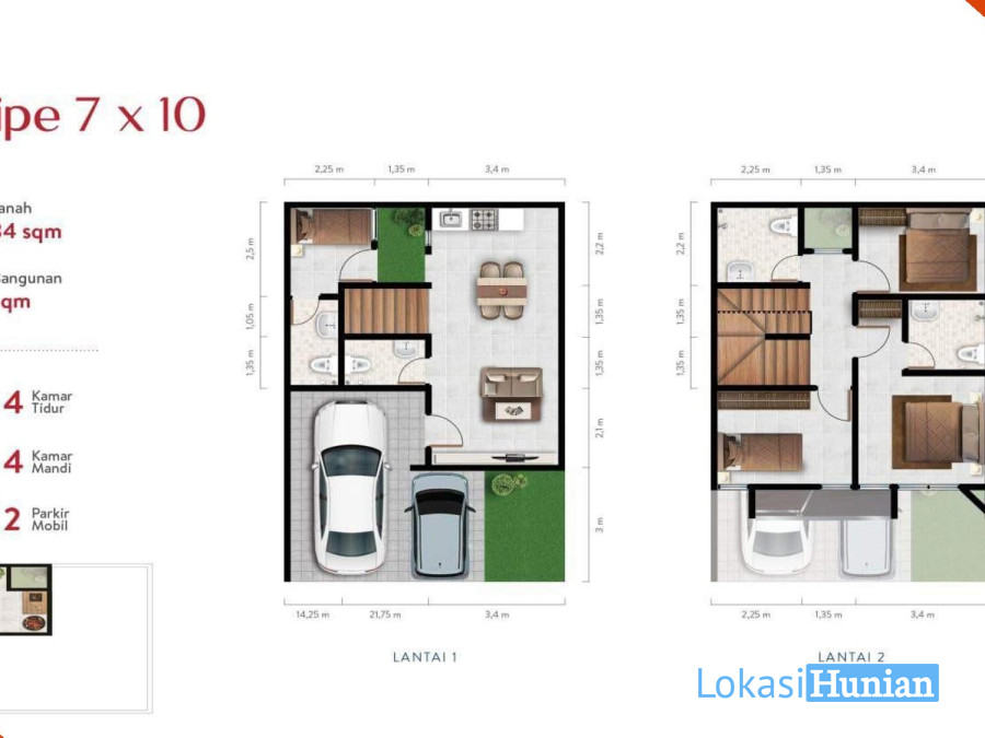 Luas Tanah : 70 m2 - 84 m2