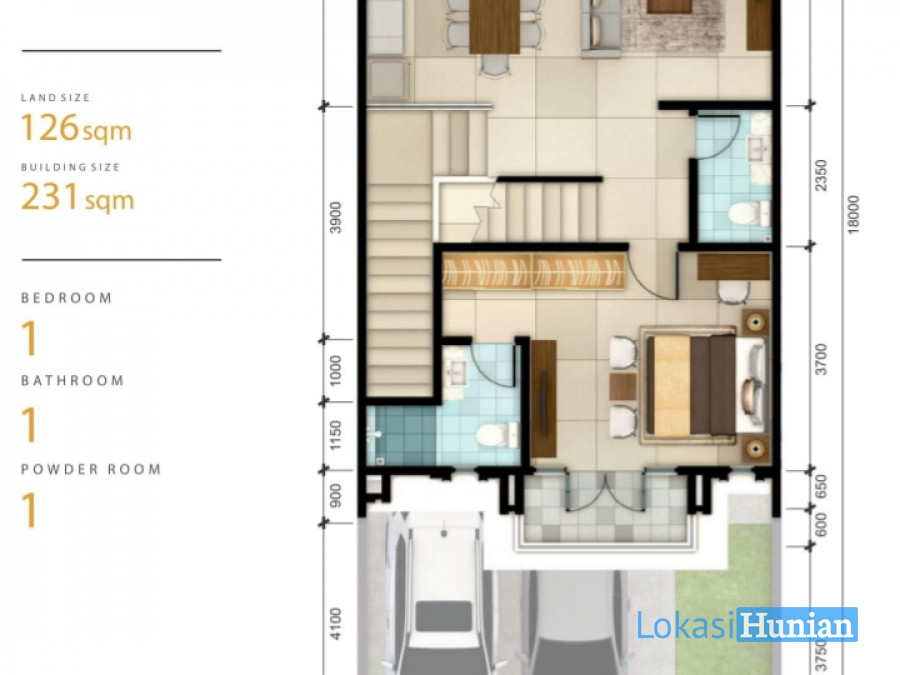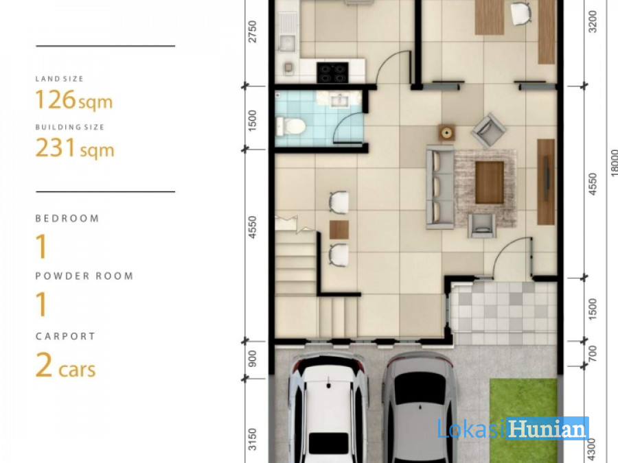 Luas Tanah : 126 m2 (7x18)