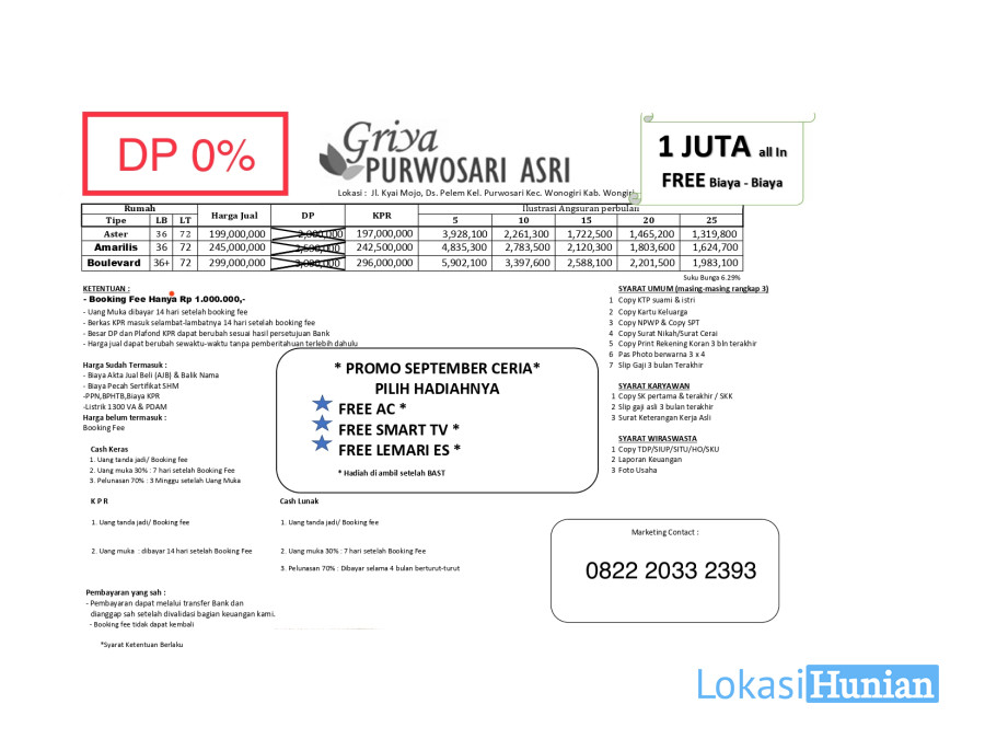 Perumahan Griya Purwosari Asri wonogiri Limited STOK TERBATAS Perumahan yang terletak di kawasan berkembang kota wonogiri.