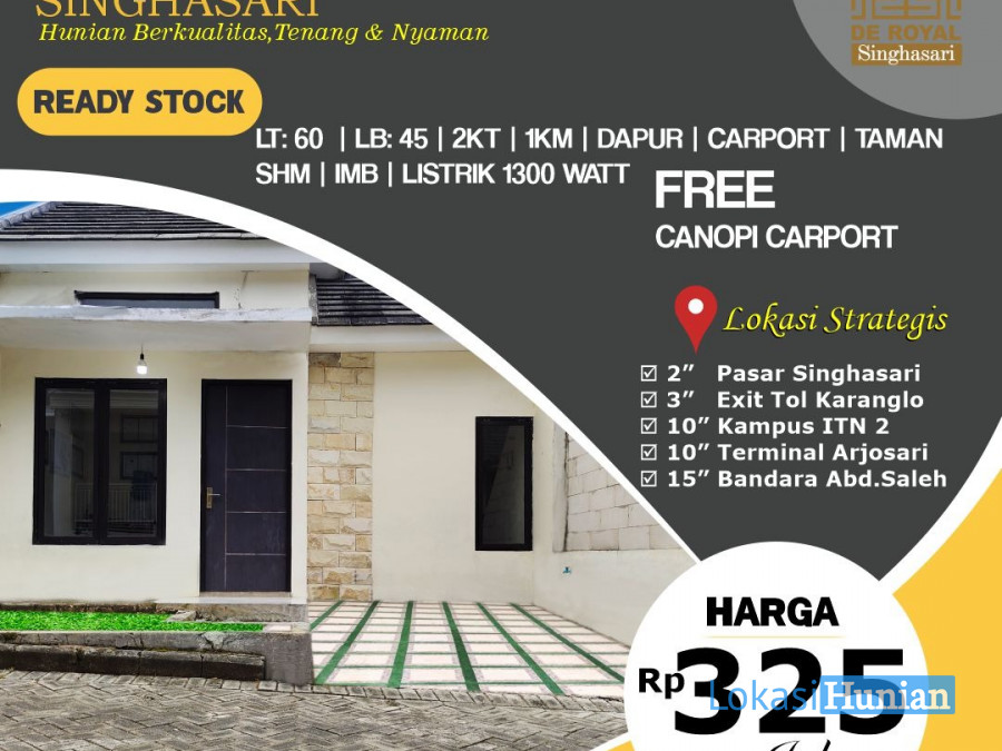 4836 .Dijual Rumah Modern De Royal Singhasari Ready Stok Rp 325 Juta<