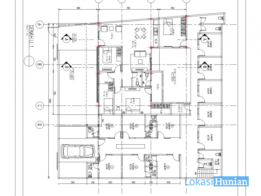 Lt 1 : Kmr kos dg km mandi dlm 6, kmr mandi luar 6...rmh utama kmr 3