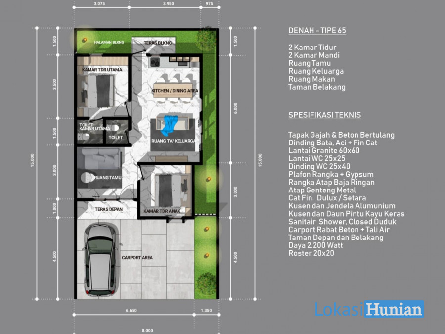 Luas Bangunan : 65 m2