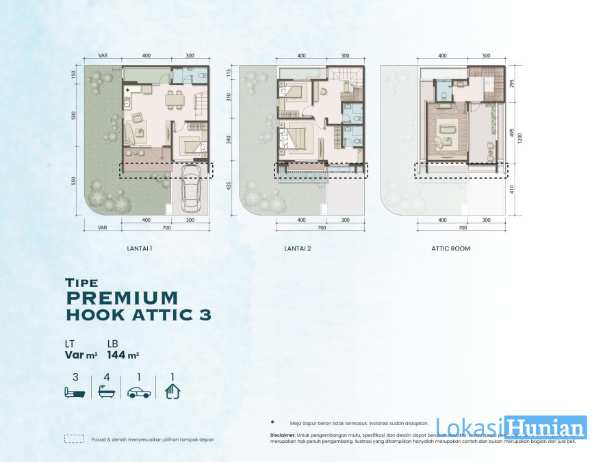- Tipe Premium Attic 1, Premium Attic 2 dan Premium Attic 3