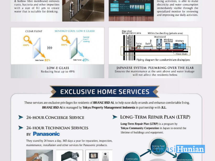 Branz BSD mengusung teknologi bangunan anti gempa & arsitektural khas Jepang, dan untuk menjaga kualitas, keamanan dan kenyamanan, Building Management dari Branz BSD sendiri akan dikelola langsung oleh TOKYU COMMUNITY.