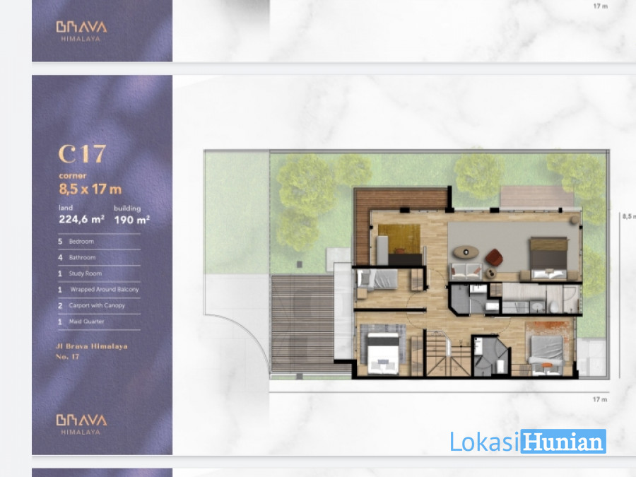 Panjang Tanah : 17 m2