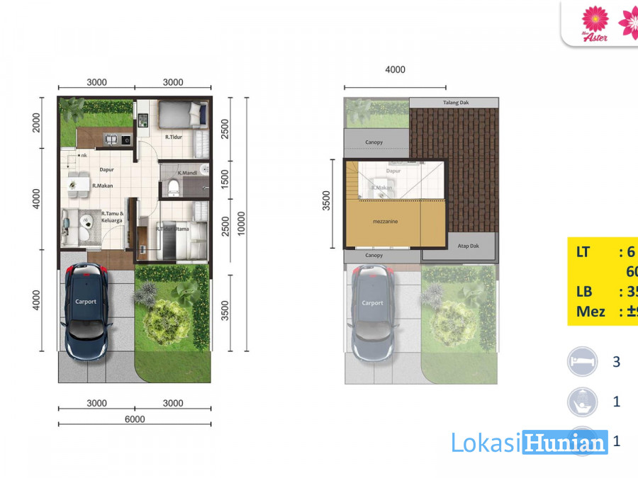 Luas Bangunan : 59 m2