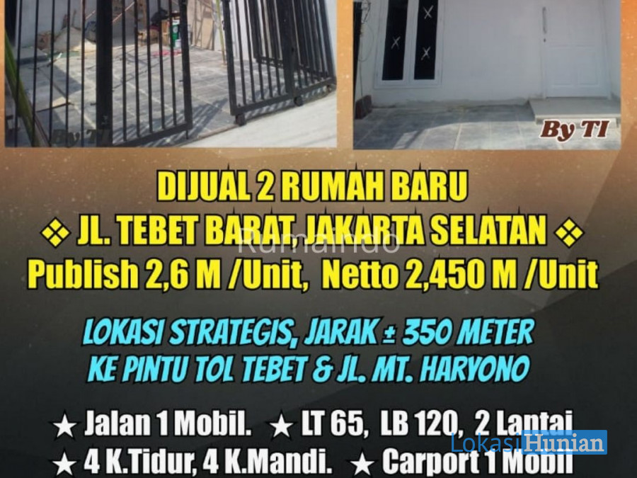 Dijual Murah Rumah Baru di Jln Tebet Barat Jakarta Selatan