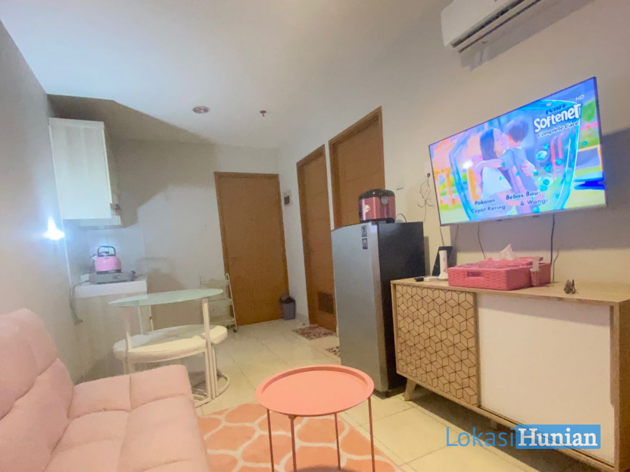 Full Furnished : ruang tamu fasilitas 2AC, smart tv 43inc, kulkas, kichent set tempat tidur semua baru