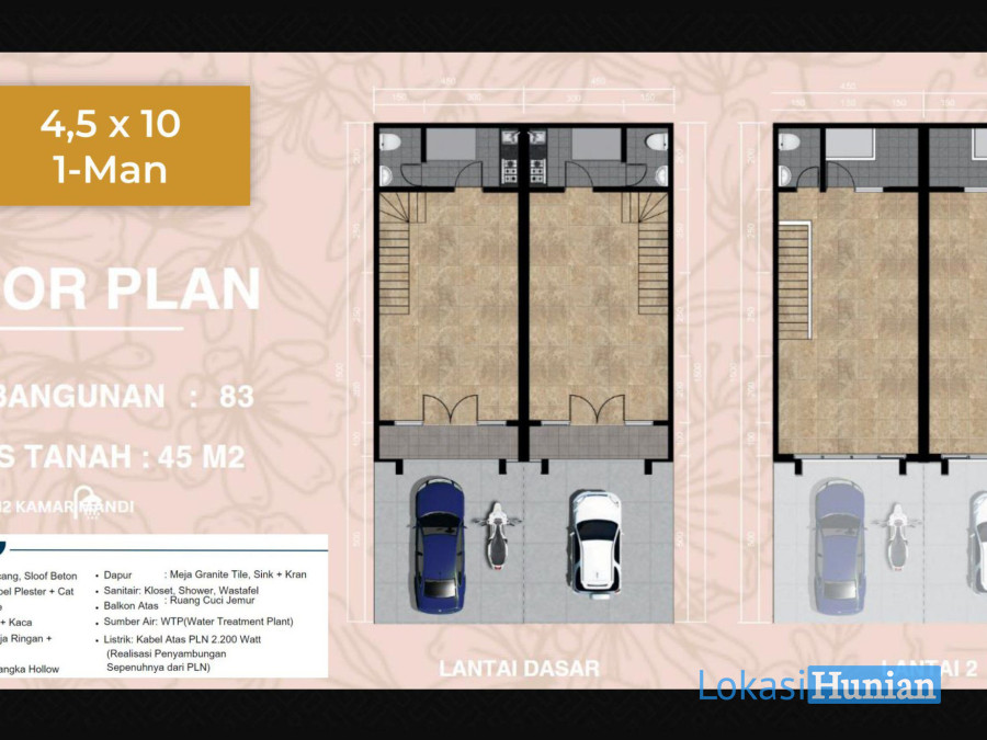 Luas Tanah : 45 m2