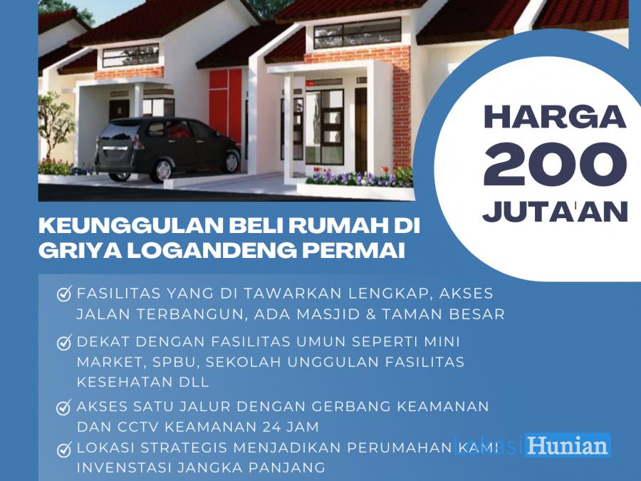 Perumahan GRIYA LOGANDENG PERMAI (GLP). Rumah dengan desain modern menjadikan perumahan ini menjadi favorit para milenials. Selain itu perumahan GLP memiliki harga yang sangat terjangkau hanya 200 jut