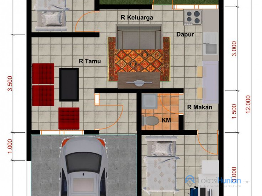 Panjang Tanah : 12 m2