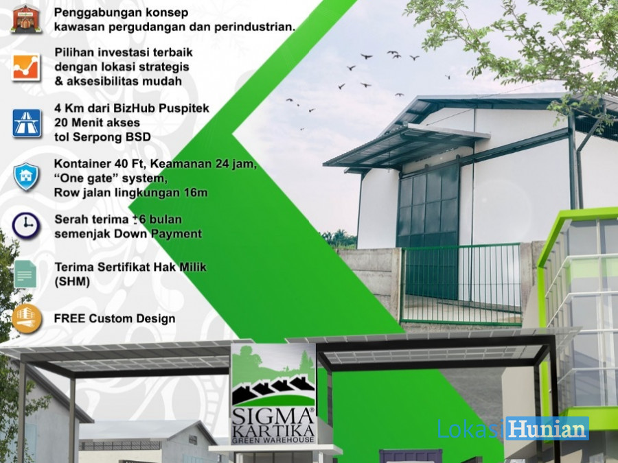 di Jalan Atma Asnawi, area berkembang perbatasan antara Tangerang Selatan dan Bogor. Terletak di kec. Gunung Sindur, ditengah-tengah Tangerang – Bogor. Lokasi ini menjadi lokasi yang Sangat Prima dan Strategis karena berada di Jalur lintas provinsi. Sigma Kartika berada hanya sekitar 4KM dari Puspitek, 8,4 KM dari Techno Park BSD, dan 30 menit dari akses tol BSD City.