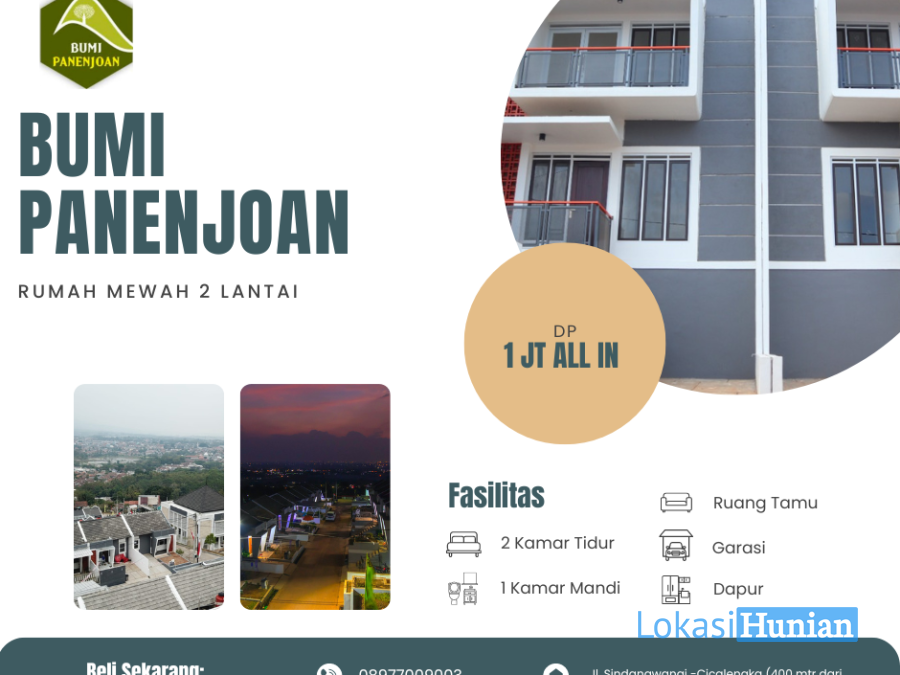 Kini hadir konsep rumah unik menyajikan view, lokasi perumahan yang berlokasi diatas bukit menciptakan pesona keindahan pemandangan lampu kota cicalengka di malam hari dan dikelola dengan developer berpengalaman lebih dari 30 tahun (Bumi Panyawangan dan Bumi Panyileukan) Hadir KPR Murah Bumi Panenjoan dengan mengeluarkan budget dp dan booking 1 jt atau 2 jt sudah sampai akad dan terima kunci