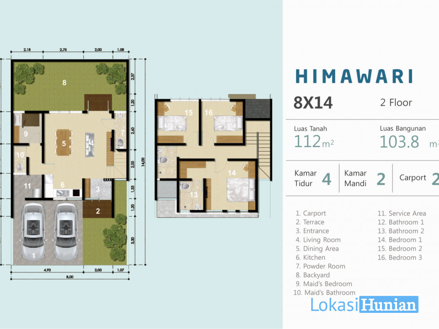 Luas Tanah : 112 m2 (8x14)