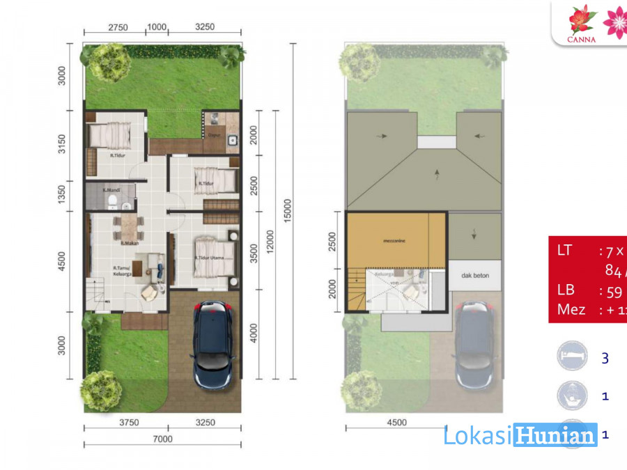 Luas Tanah : 84 m2