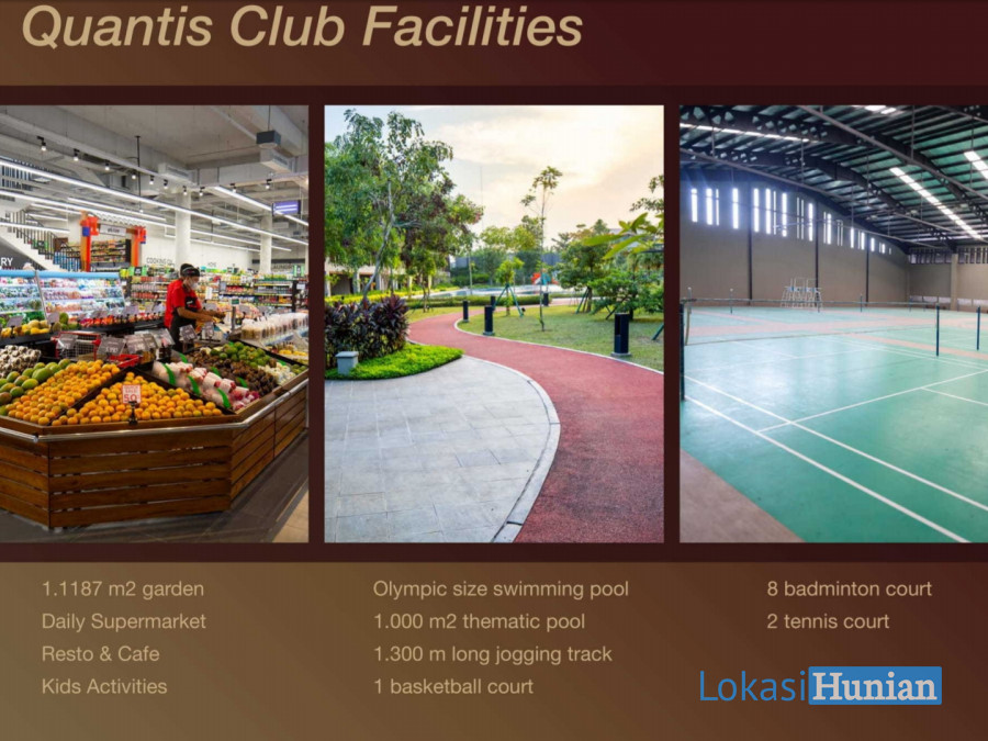Daily Supermarket, Resto dan Cafe, Kids Activities, O lympic Size Swimming Pool, 1.000m2 Thematic Pool, 1.300 Long Jogging Track, 1 Basketball Court, 8 Badminton Court, 2 Tennis Court