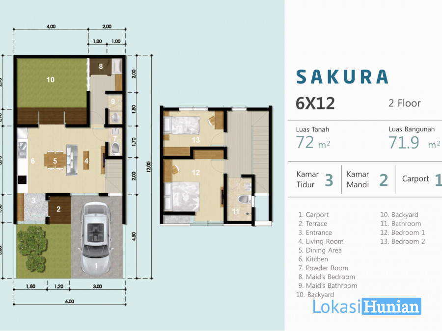 Luas Tanah : 72 m2 (6x12)