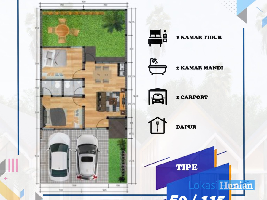 Type 50/115 (Luas Bangunan: 50m², Luas Tanah: 115m²)