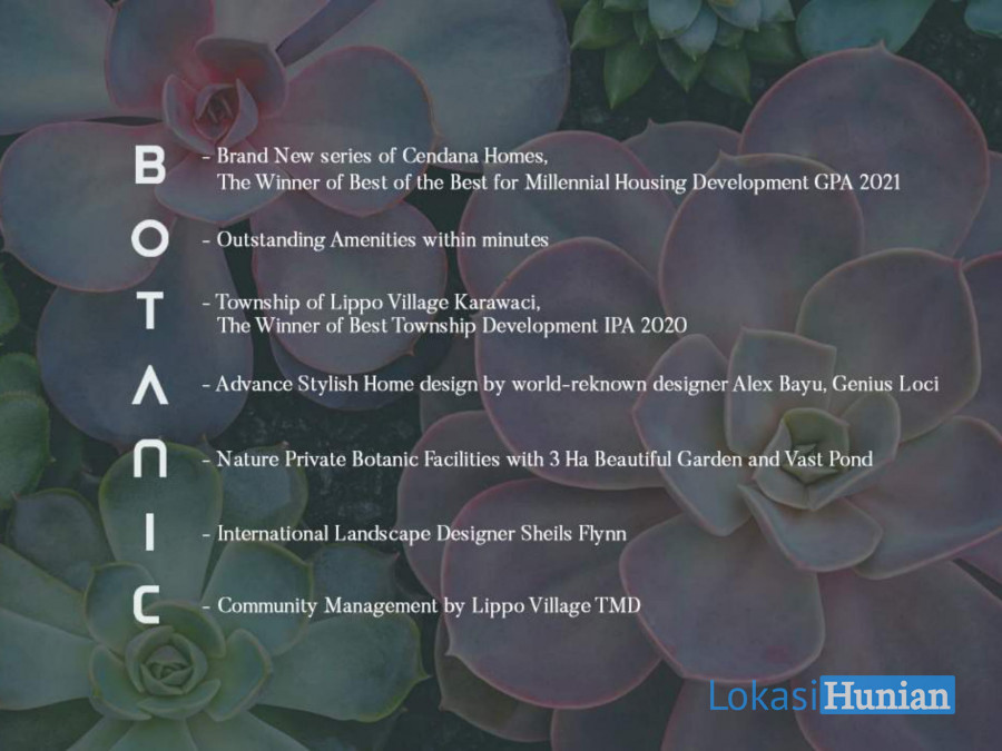 Setelah sukses memasarkan 15 cluster, kini Lippo Village kembali mengeluarkan produk terbaru dari Cendana Homes, yaitu CENDANA BOTANIC