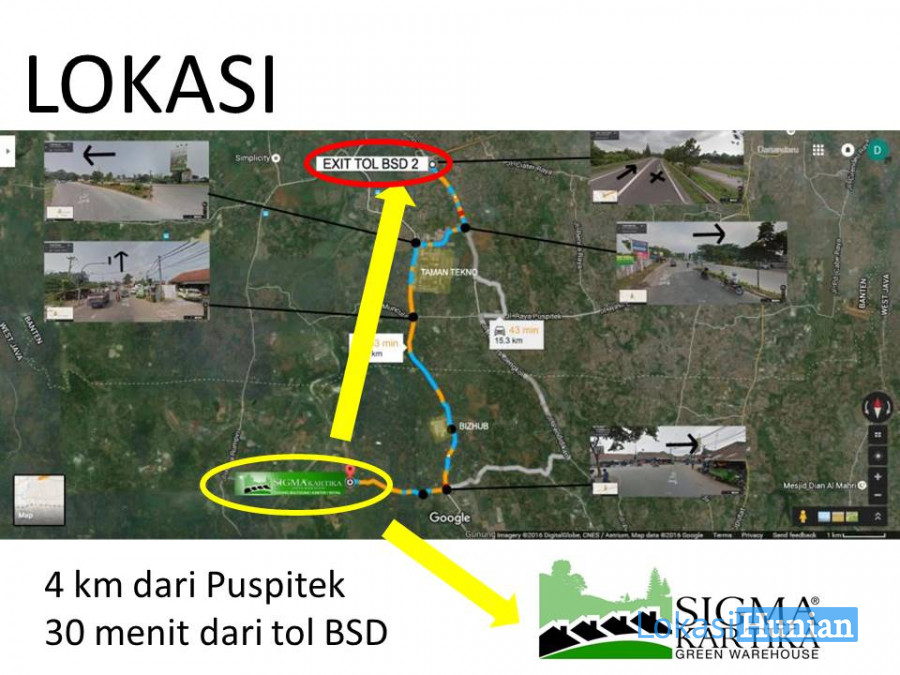 di Jalan Atma Asnawi, area berkembang perbatasan antara Tangerang Selatan dan Bogor. Terletak di Kec. Gunung Sindur, ditengah-tengah Tangerang – Bogor. Lokasi ini menjadi lokasi yang Sangat Prima dan Strategis karena berada di Jalur lintas provinsi. Sigma Kartika berada hanya sekitar 4 KM dari Puspitek, 8,4 KM dari Techno Park BSD, dan 30 menit dari akses tol BSD City.